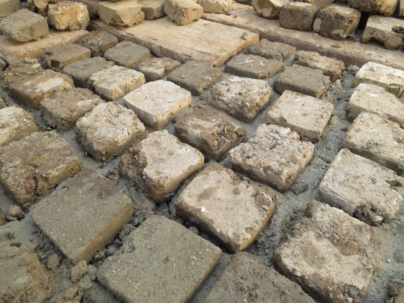 ハンマードリルで出来そこないの牛乳パック煉瓦を破壊した翌週の雨の休日仕事でお世話になっている業者さんのトラックが我が家に到着。700個・・・発注してしまいました。しかも最初のホームセンターで買った色は...