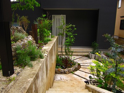 玄関アプローチ 玄関アプローチ前の小庭4 菜園スペース1
