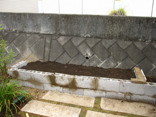 さて芝をはっている時にも写っていたこちらなにかといいますと「菜園スペース」です。 今時だと「キッチンガーデン」ですね家の方角でゆくと北側になるのですが日陰にならないためにほぼ「南向き」といえるスペース...