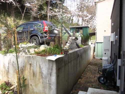 駐車上スペースに妄想通りにブロックや枕木を配置しました。次の作業は「固定」余談ですがここで作業をしていたら4人ものご近所さんに声をかけられて「こーして、あーする予定なんです!」と話しまくりました。「楽...