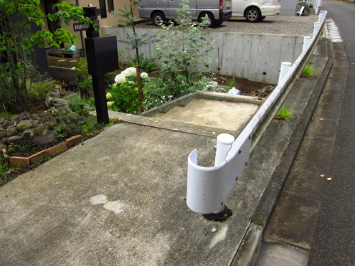 だいぶ間が空いてしまっています。忙しさと暑さの為に作業が進んでいないが故のネタ切れです(汗)なので単発記事です。入居当時から彼が絶対撤去したいと言っていたものがあります。こちらのガードレール車の出し入...