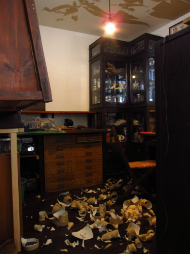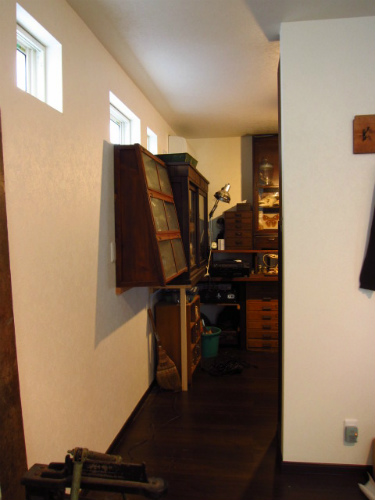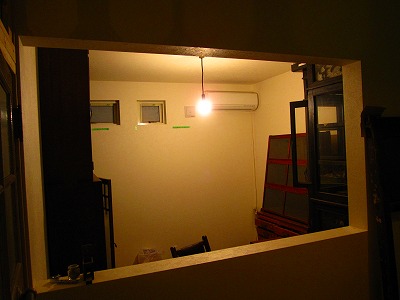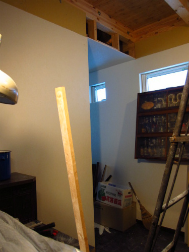 扉の仕込みが終わったので枠を設置してゆきます。ドアにあわせて壁をつくりましたが棚と壁の間にこんな具合にスイッチがきてしまっているのでとりあえず引き抜いて取り出しておきます石膏ボードをはりながらドアのレ...