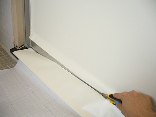 前回の続きです。カッティングシートを貼り終えました。面倒な端っこの処理です。薄いウエスで少しずつ力を加え角を出してゆきます。直線は角が出しやすいので、出た分だけ慎重にカット。定規も試してみましたがゴム...