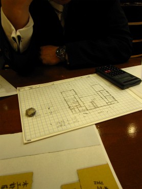 建築用の図面に微調整をしながらOさんが描き込んでゆきます。