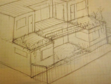 1階の庭部分は背丈よりも高くてしっかりとした壁で密封されていて