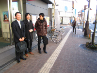 銀行から出てきたところを無理矢理記念写真。