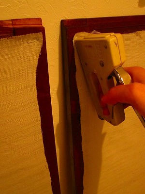 目隠し代わりに扉の裏に布をガンタッカーで打ち付けて