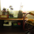 家具ってなかなかダメにならないから凄っい!ことでもしない限りあのままですね。最近、大正ロマンギンギンの赤いランプと黒いアイアンの扇風機が入ってきてまたゴッチャになってます(笑)