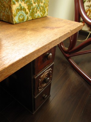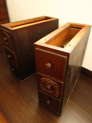 古い足踏みミシンのサイド引き出しのパーツ。