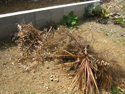 なんだか分からない植物も、借家から引っこ抜いてきた植物がかれました。