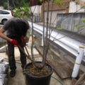 玄関のアンティーク扉設置1
