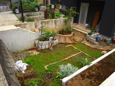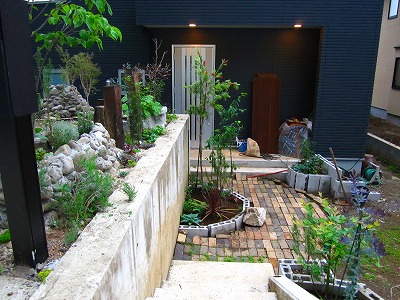 ちなみに、コンパネ固定はレンガを利用しているので土を掘ってもいないし大工作業もしていません。