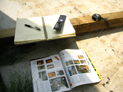 ウッドフェンスのDIYが載っている雑誌をしっかりと広げてやる気満々。
