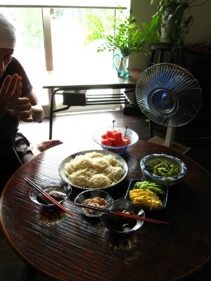 ちゃぶ台を引っ張り出してきて、おばあちゃんの家みたいなお昼