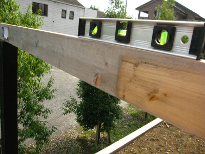南側ウッドフェンス9 笠木施工と高さの水平出し