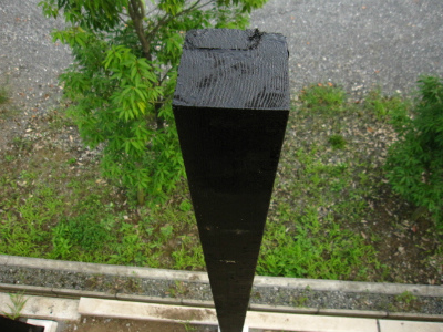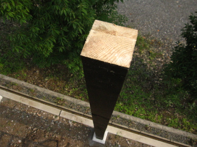 9cmの笠木は上から支柱にビスで打ち付けて剥き出し状態です。