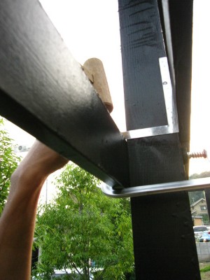 彼は強度の為のコーナーを施工し始めました。