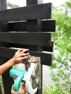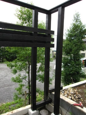 南側ウッドフェンス11 コーナーの施工1