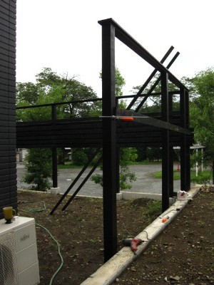 コーナーに支柱が立ちました。