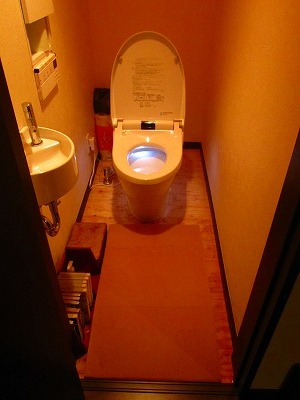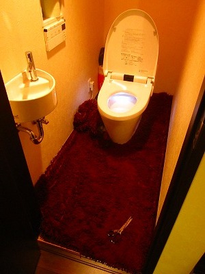 明かりで誤魔化していますが実は酷いトイレなんですよ。