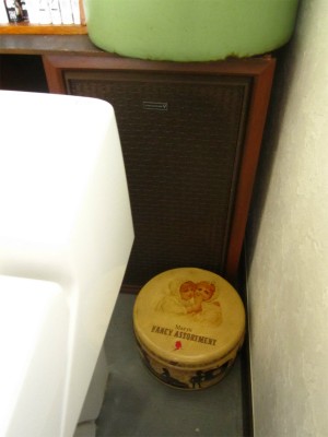 ・壁をくりぬいて諸々の用品の収納棚を設置