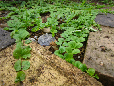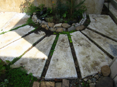 アプローチのコンクリの間はこんな感じ。
