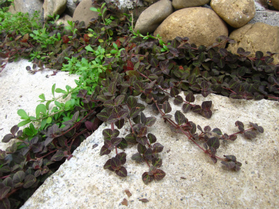リシマキア ミッドナイトサンと戯れているのはリッピア (ヒメイワダレソウ)