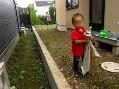 ご近所さんとの交流の結果 (↑垣根のないお隣さんの敷地)