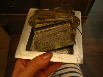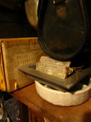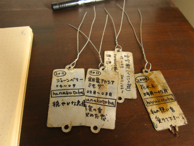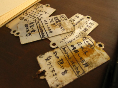 略奪した古い商標ラベルの裏に書きます。