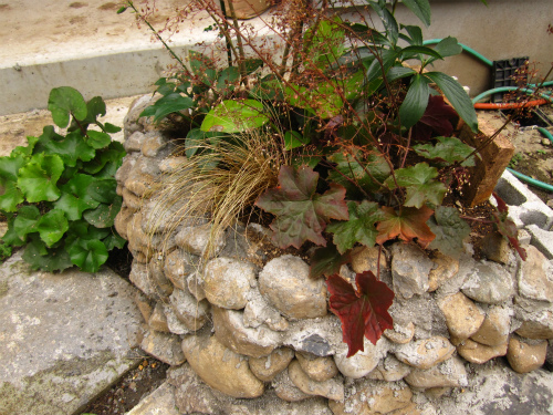 この花壇はキボウシ・クリスマスローズ・ヒューケラが何故かちゃんと育ってくれる花壇のようです。