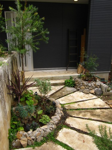 アプローチ玄関の石積みの経過を中途半端ですがまとめてみたいと思います。