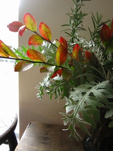 ブルーベリーの葉っぱがまるで赤い花のように綺麗