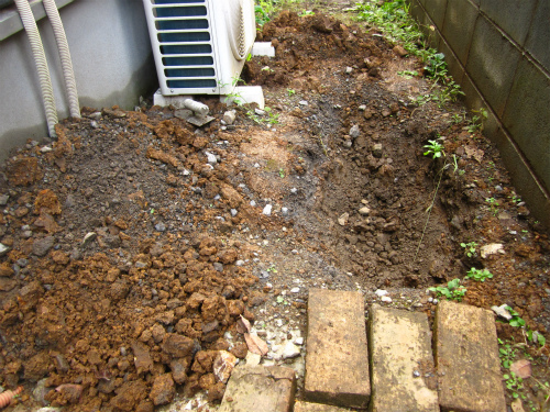 これでは植物も植えられないし、とってもいや~な感じなので