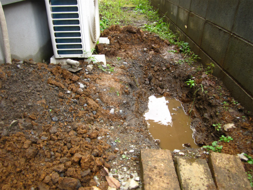 浸透枡を数個埋めても余り変わらない気がするので配管ついでに大きめに溝を掘るー(汗)