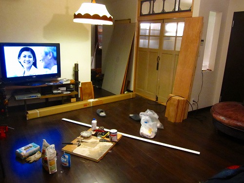 作業場化したリビングで優雅にテレビ観