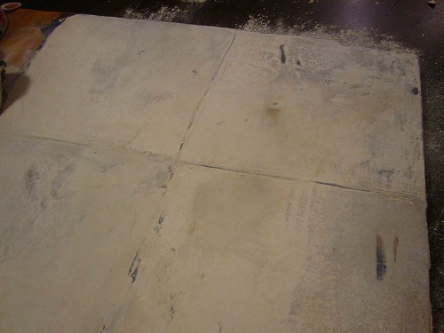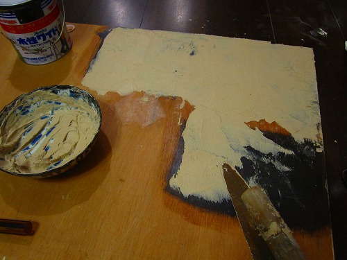 5 二度目の漆喰をこすったりしながら薄く塗り邪魔な1下地や2マチエルを塗りつぶす