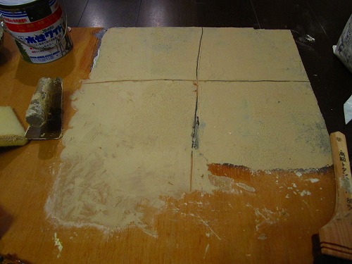 マチエルをつけた漆喰を削ったりヤスったりした後に