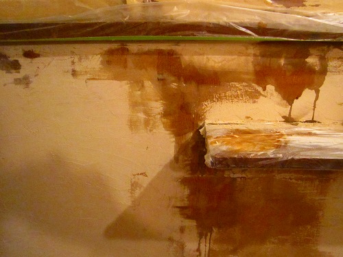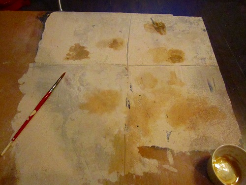 コテで引っかいたりしてマチエルの濃淡を出し終えた状態です。