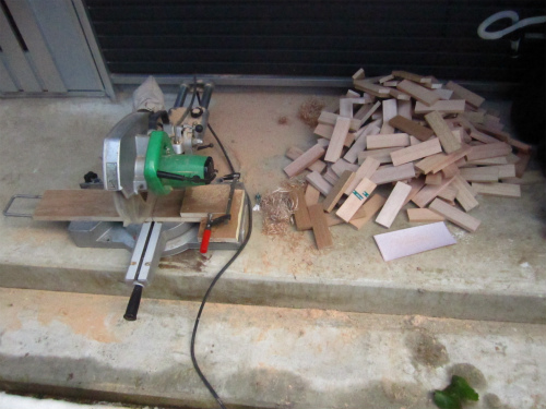 木を細かく切ってるのを見た時、床をヘリンボーンにするのかな?