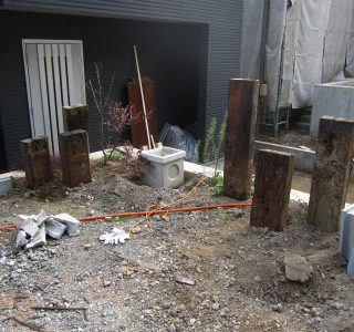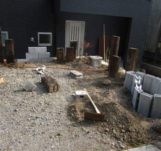 南側のウッドフェンスでカットした木材が丁度余って風雨にさらされたままなので再利用もしつつ