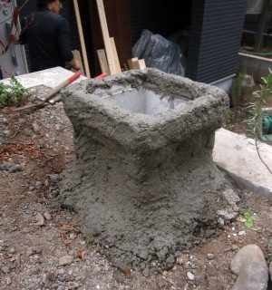 手前のコンクリート面にも前回の要領でボルトの土台を施工して