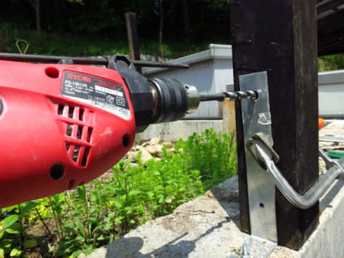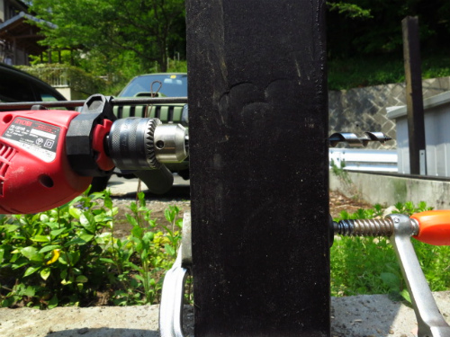 ドリルで穴あけ。