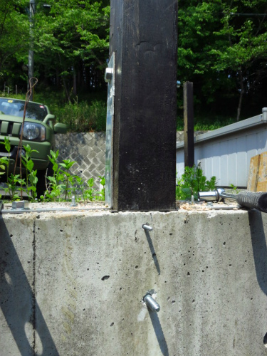 土台となる金具をコンクリートに取り付けられたので