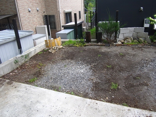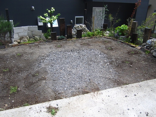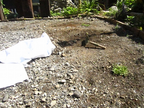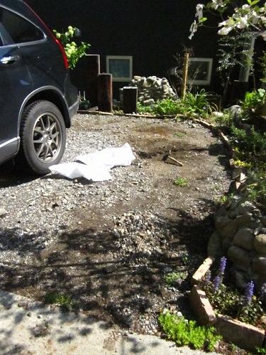 とりあえず、やらねばと思っていた駐車場の砂利を取り除きながら