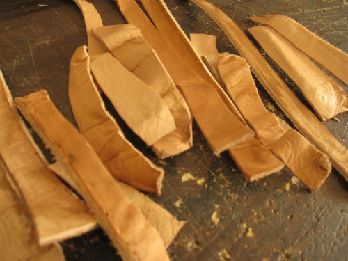 前回記事の「レザータイル」に使うのすら、ちょっとなぁ~という革の端きれを