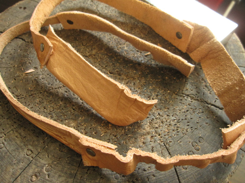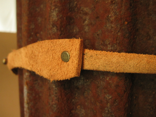 こんな風にカシメでガンガンつなげてしまい紐にしてしまいます。