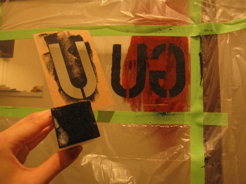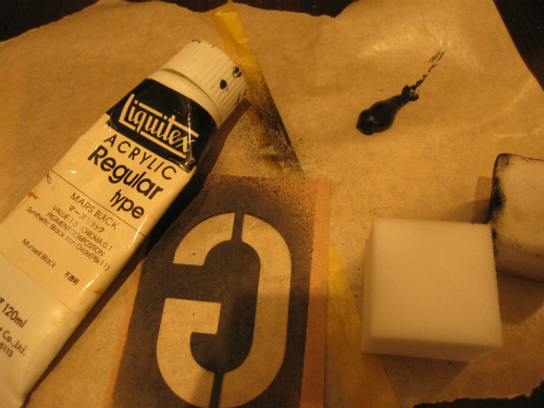 結局いつもの如くアクリル絵の具とスポンジでトントン作業。