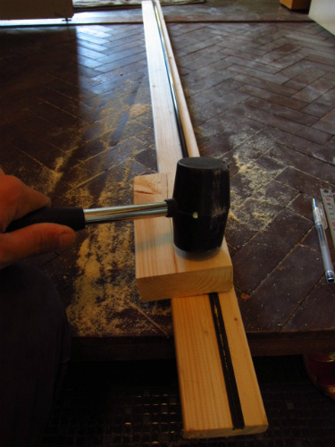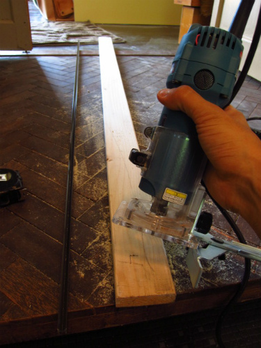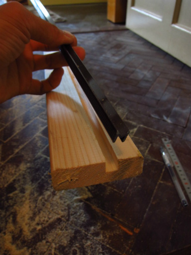 出来上がった溝にレールをあてがい