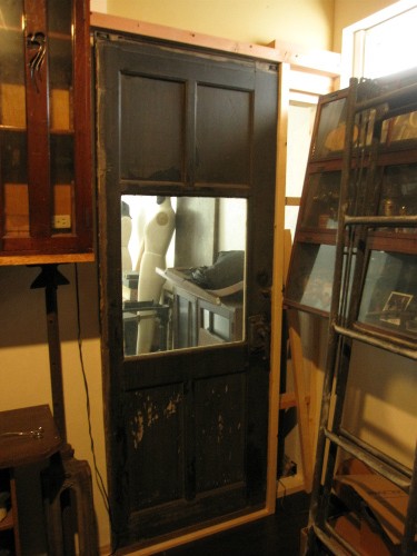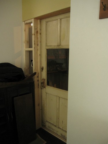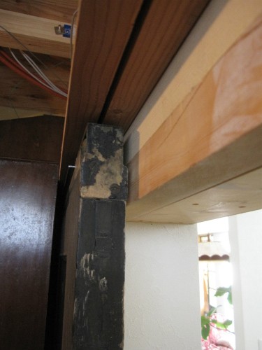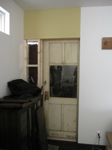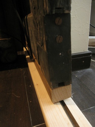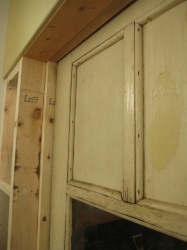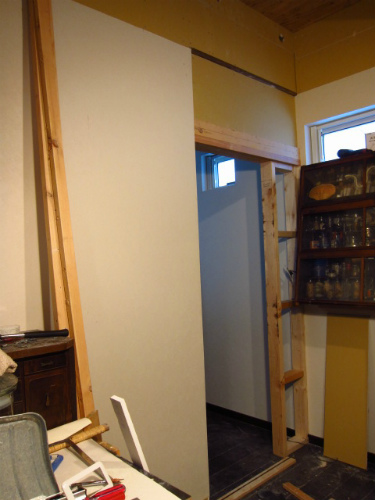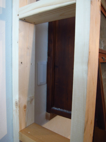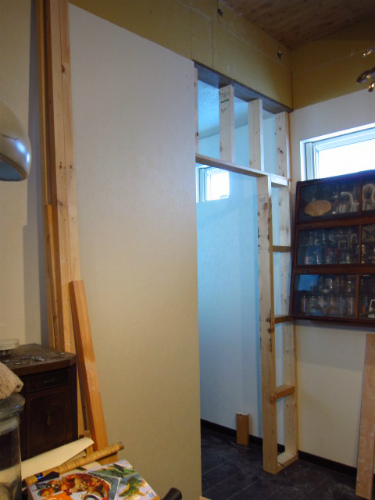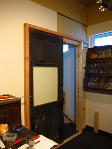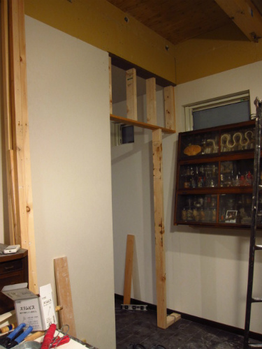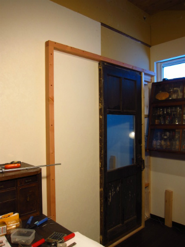 ドアのレー用に仕込んだ木枠を上下に設置し
