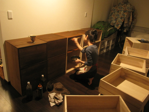 オイルステインの同じ茶色でも色々な色味があるんですよねー。。。